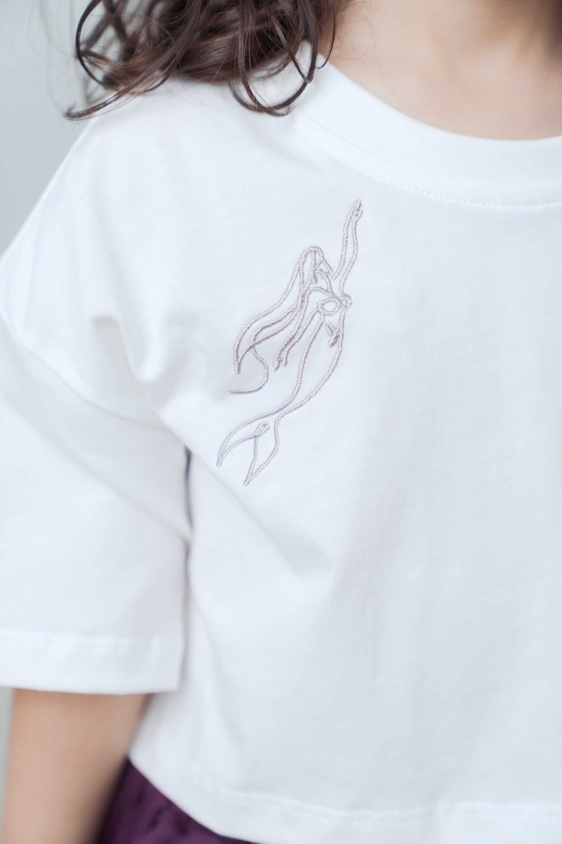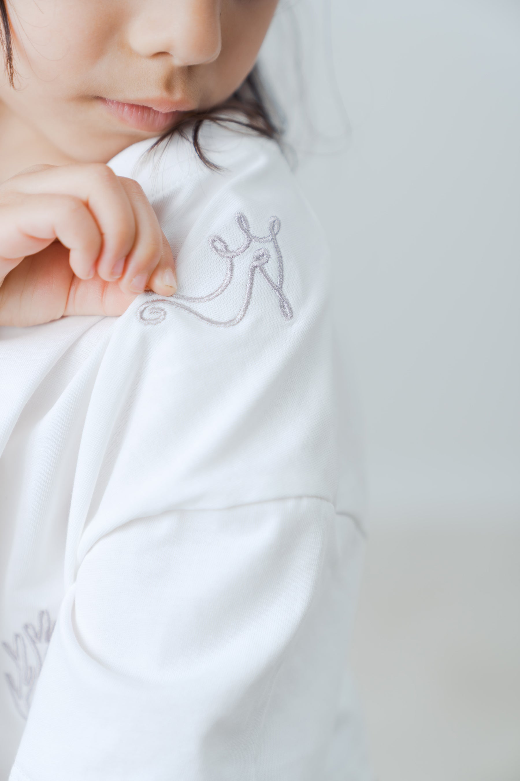Do you know a little one who is obsessed with mermaids? Mauve embroidered mermaids, sea horses, and shells, the Mermaid Tee is a favourite must have for any little girl who loves all things magical.