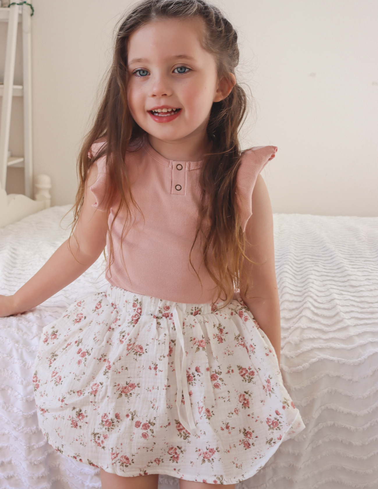 This gorgeous little floral cotton print skirt is great for all seasons of the year - Pair with a pair of cute socks or tights in winter or simply pair with a t-shirt or a singlet.