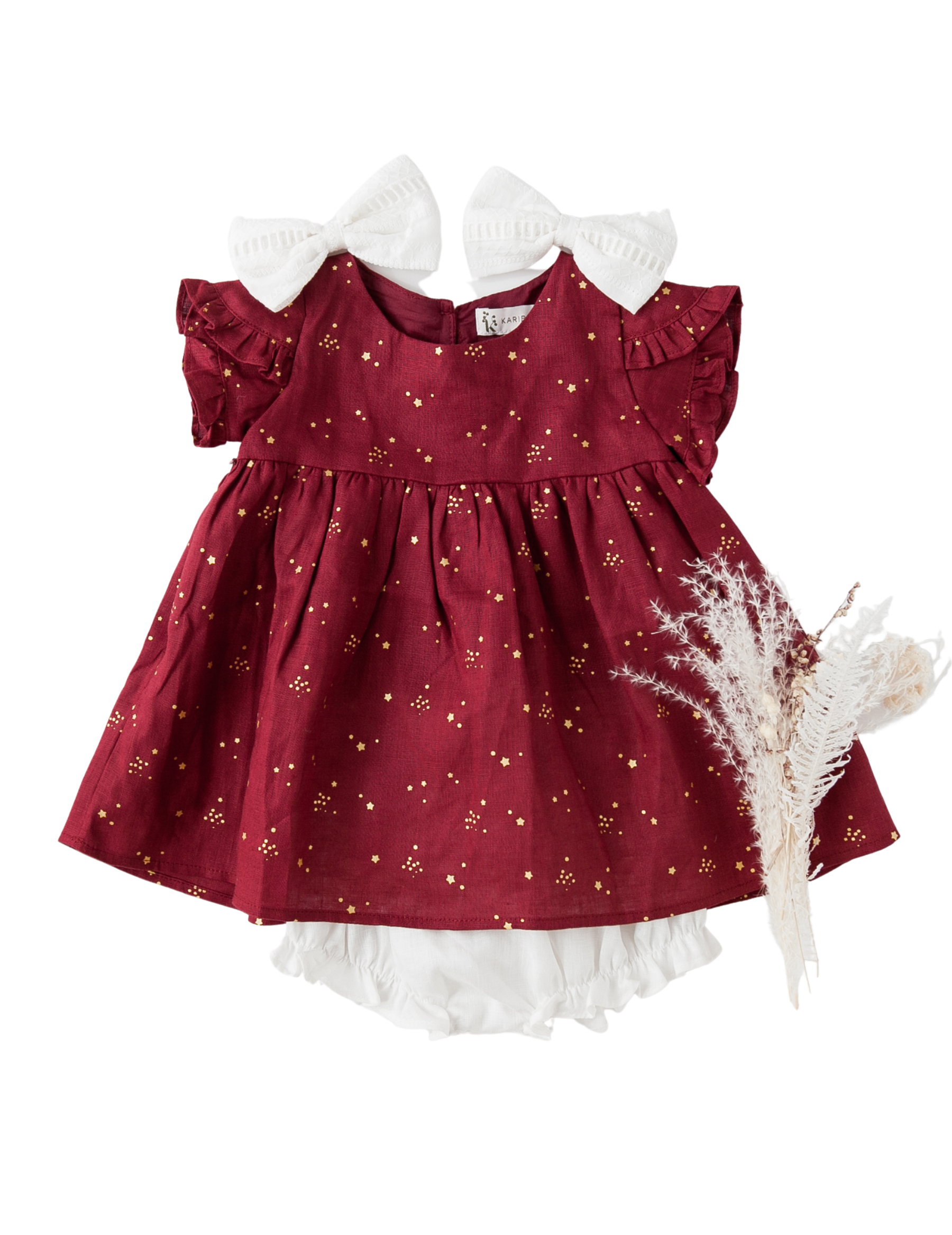 These adorable ruffled bubble linen bloomers are such a great go-to girls clothing piece for covering that nappy of hers or creating a cute look in a flash. When shopping for baby girl clothes don’t forget to add these bloomers to the cart!