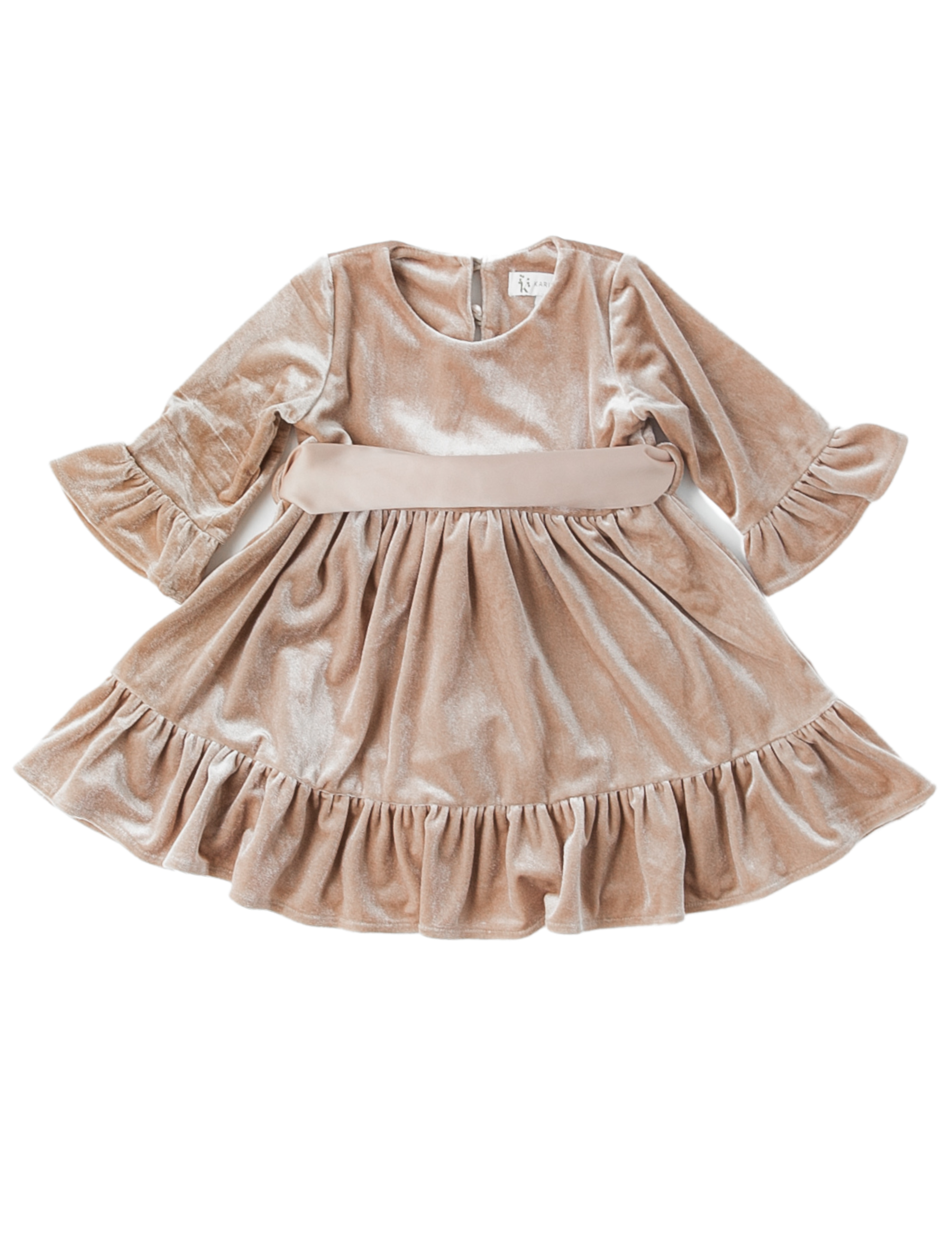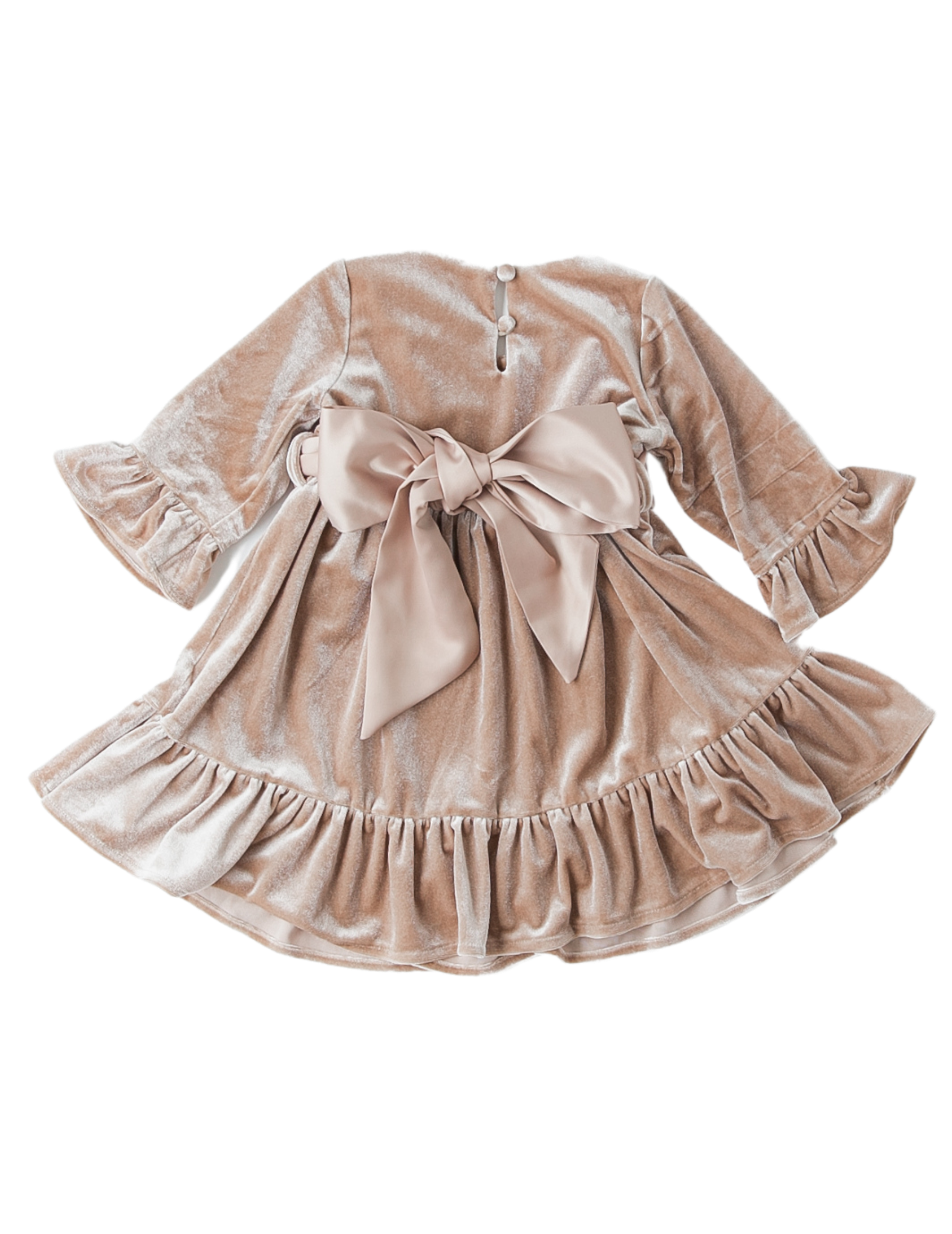 Grace Velour Dress with Removable Satin Sash - Sheer Beige