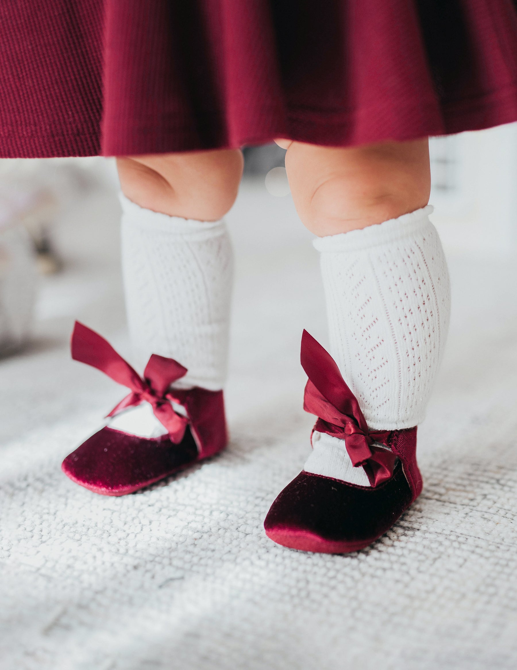 The little shoes are finished with a beautiful satin bow, making these wee shoes just perfect for special occasions, including baptisms, weddings, birthdays, and more.
