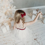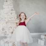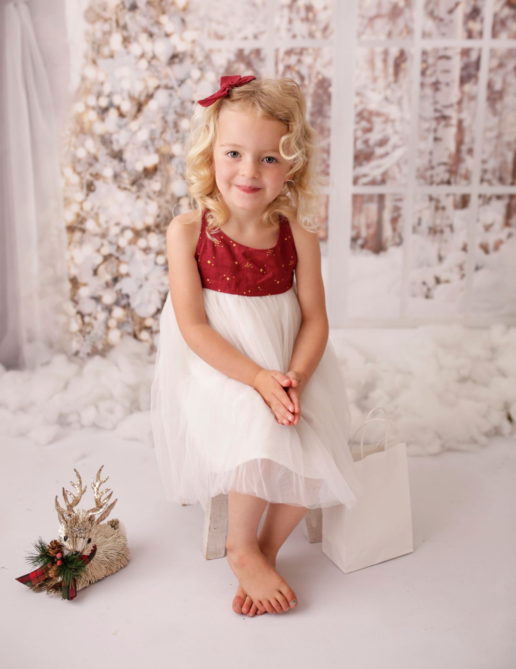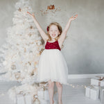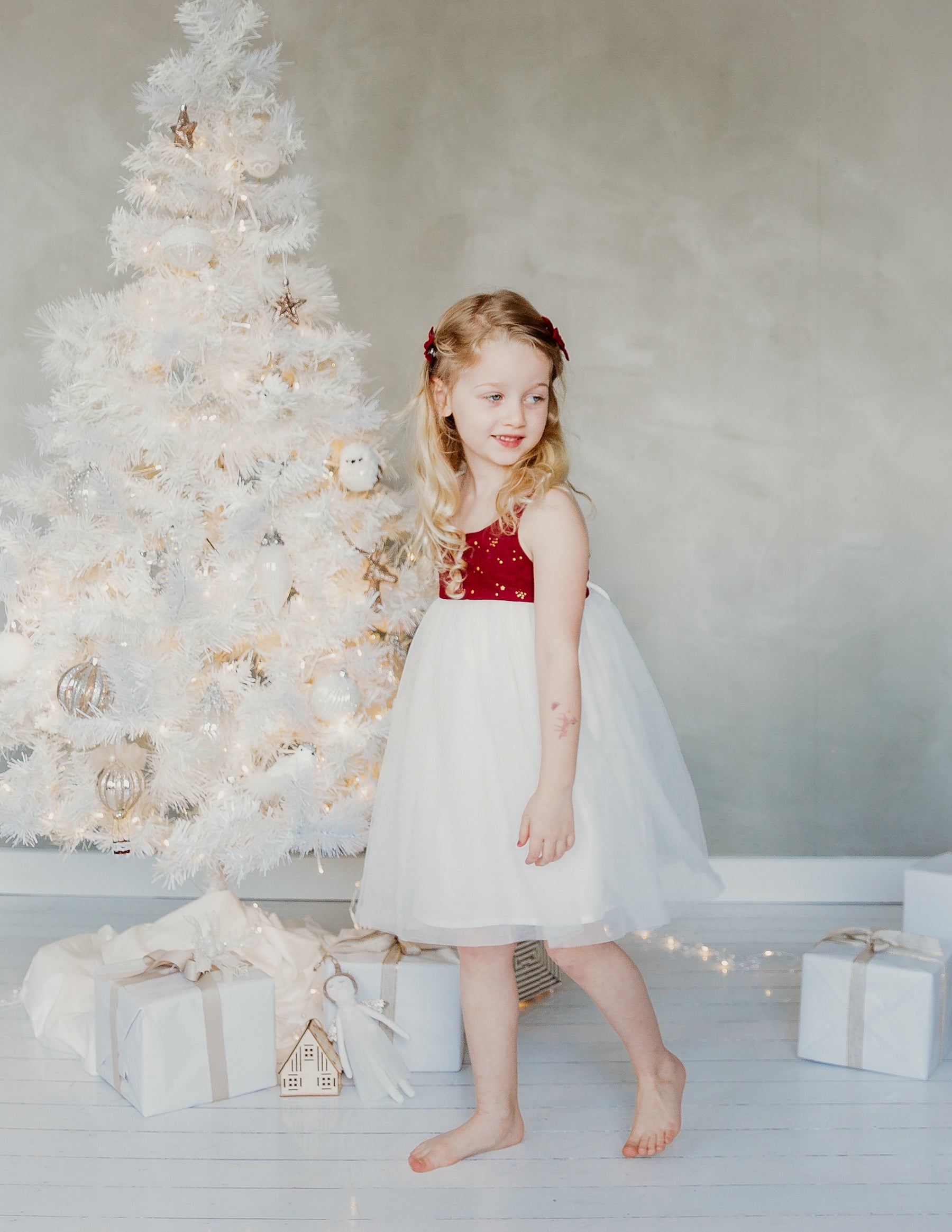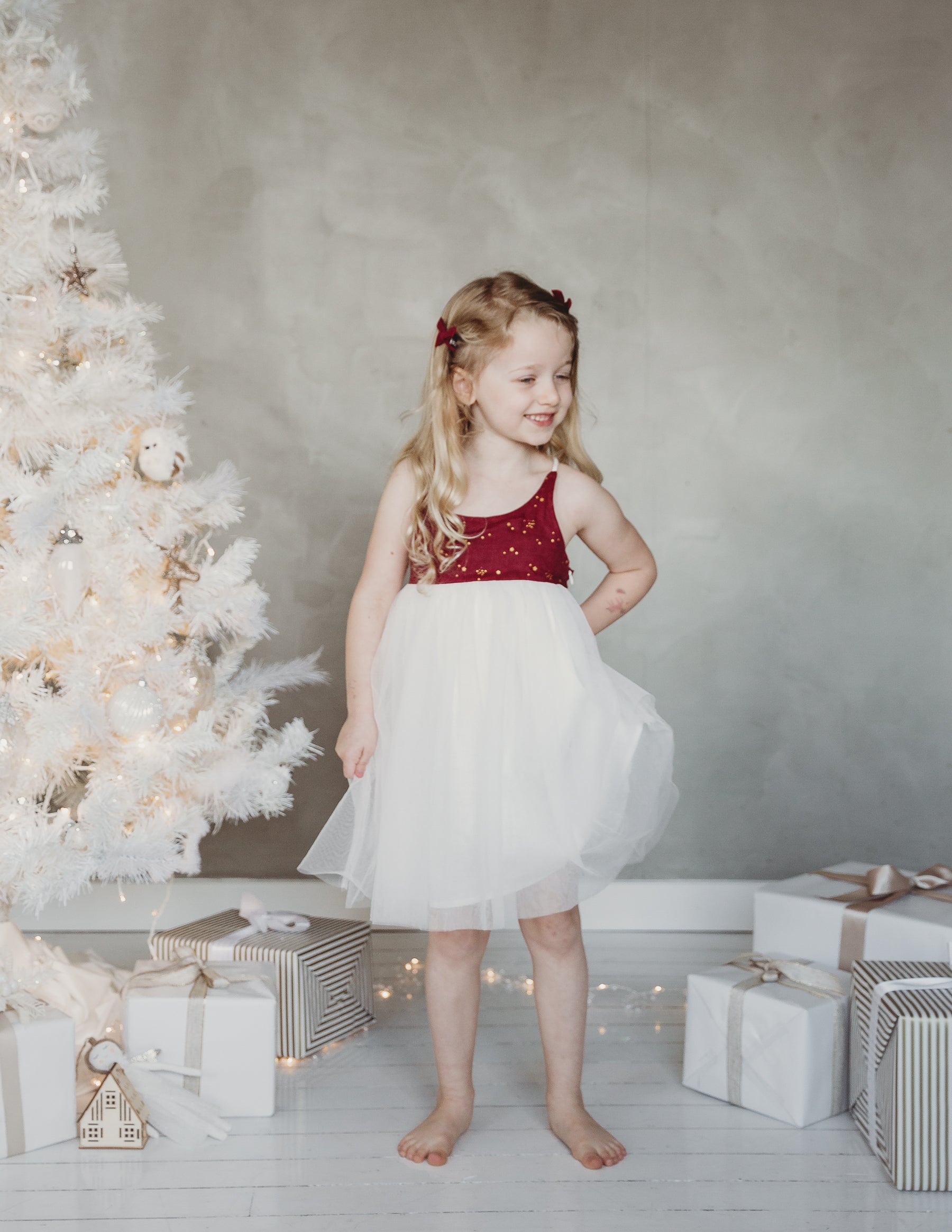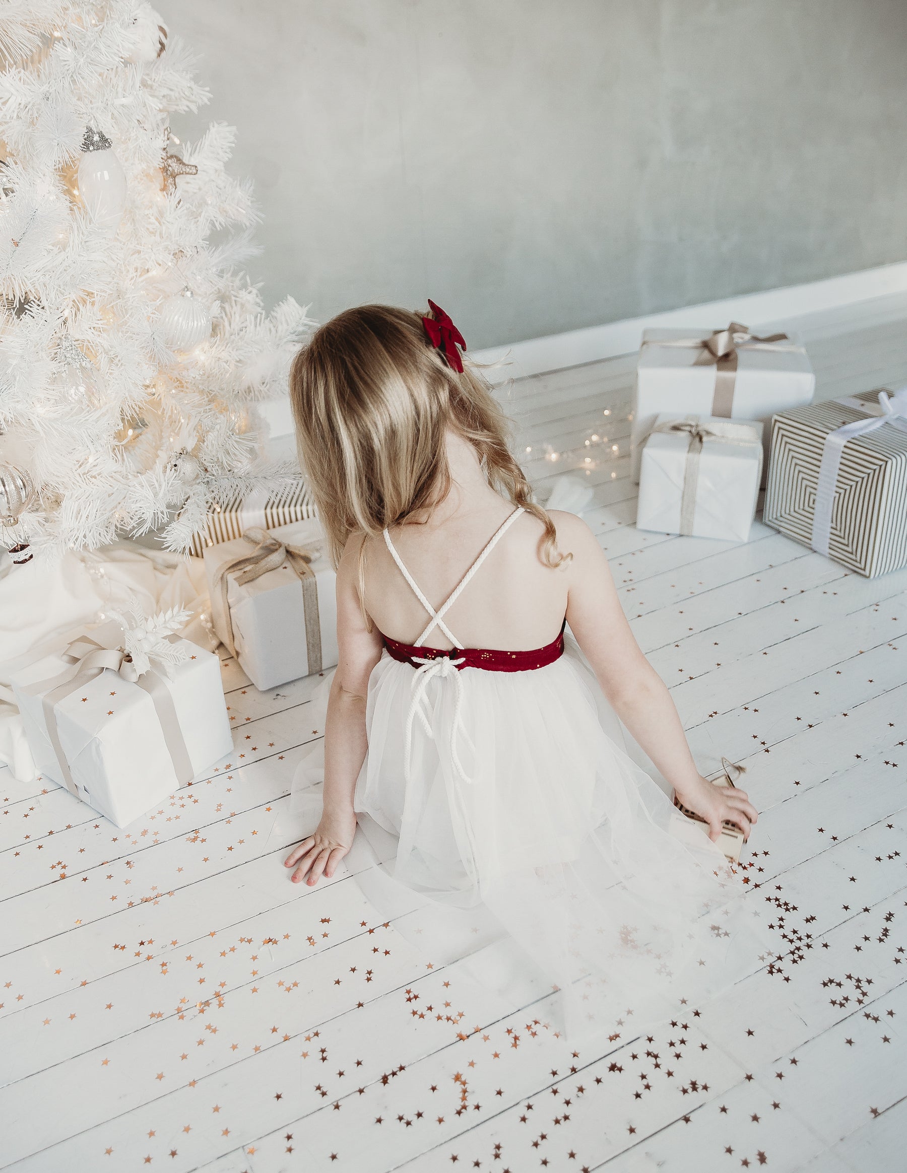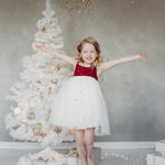 The dress features a beautiful open back with tie details at the back. The linen will keep your little darling cool all summer long. And best of all, the Red and Golden Stars make it the perfect Christmas Day Dress.