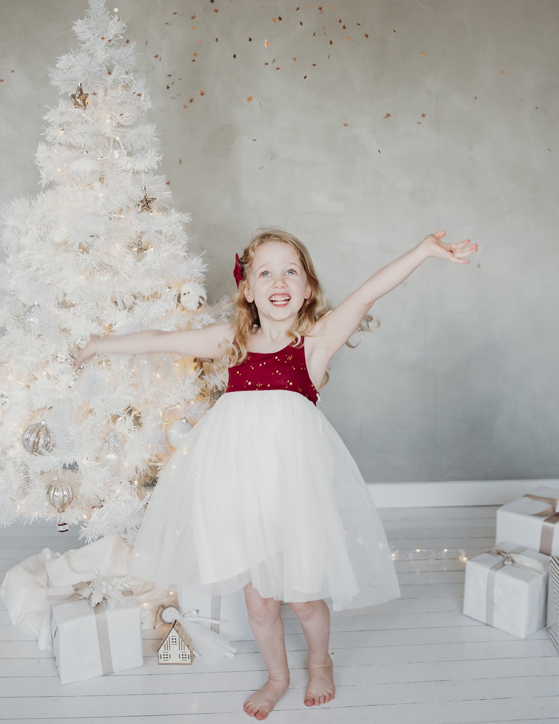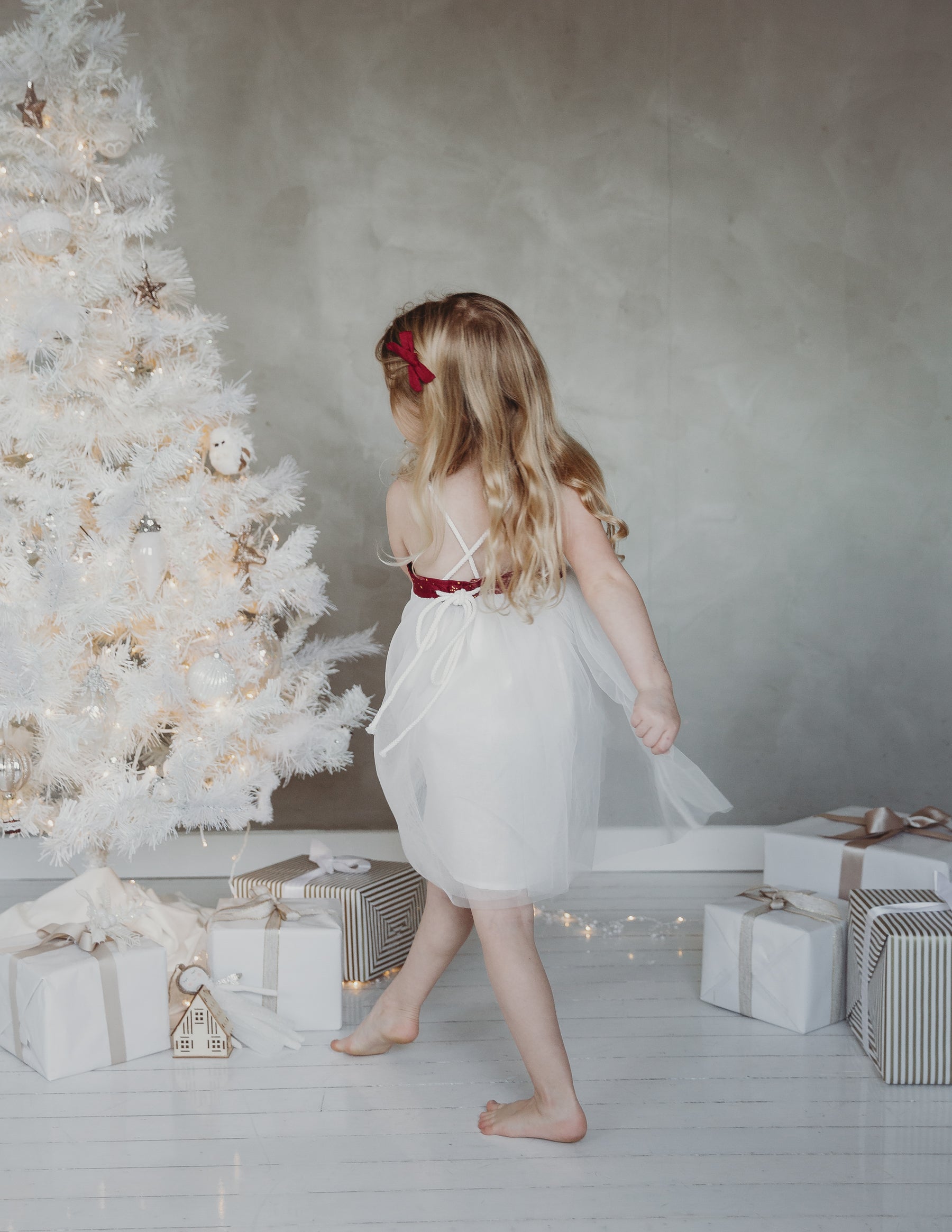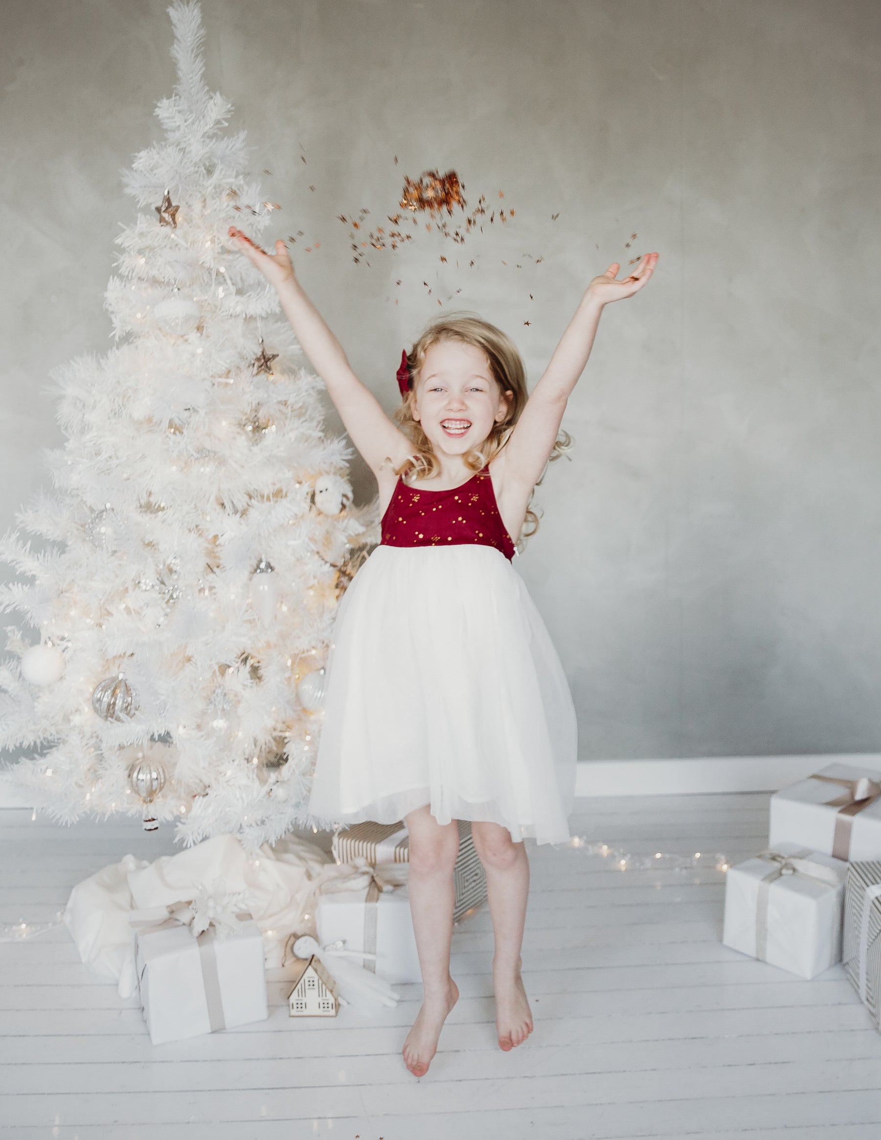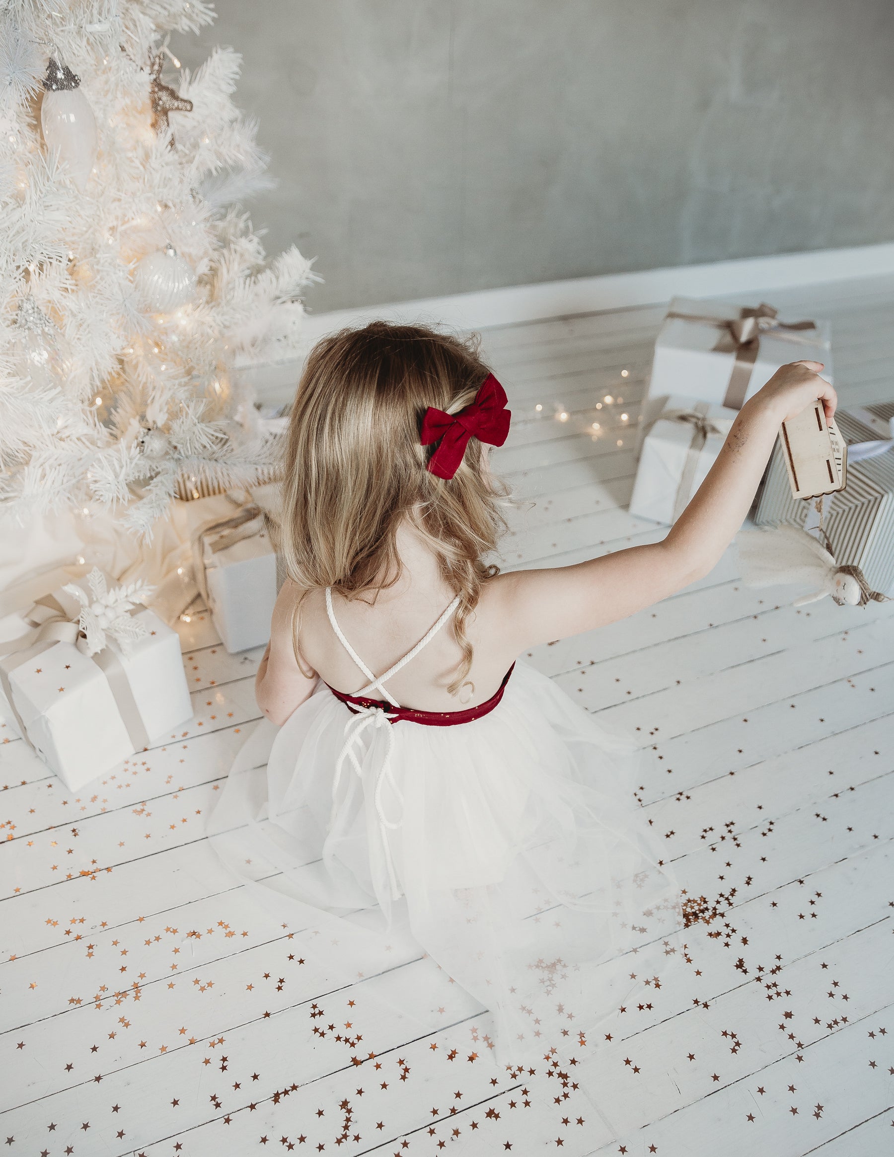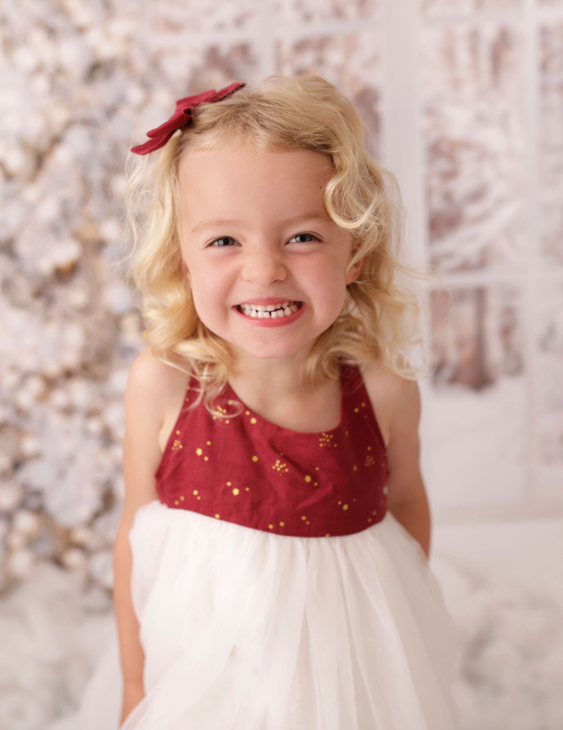 The dress features a beautiful open back with tie details at the back. The linen will keep your little darling cool all summer long. And best of all, the Red and Golden Stars make it the perfect Christmas Day Dress.