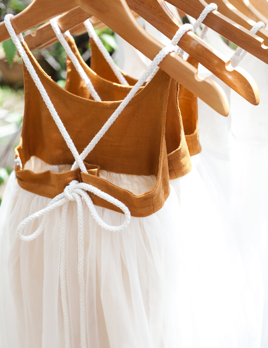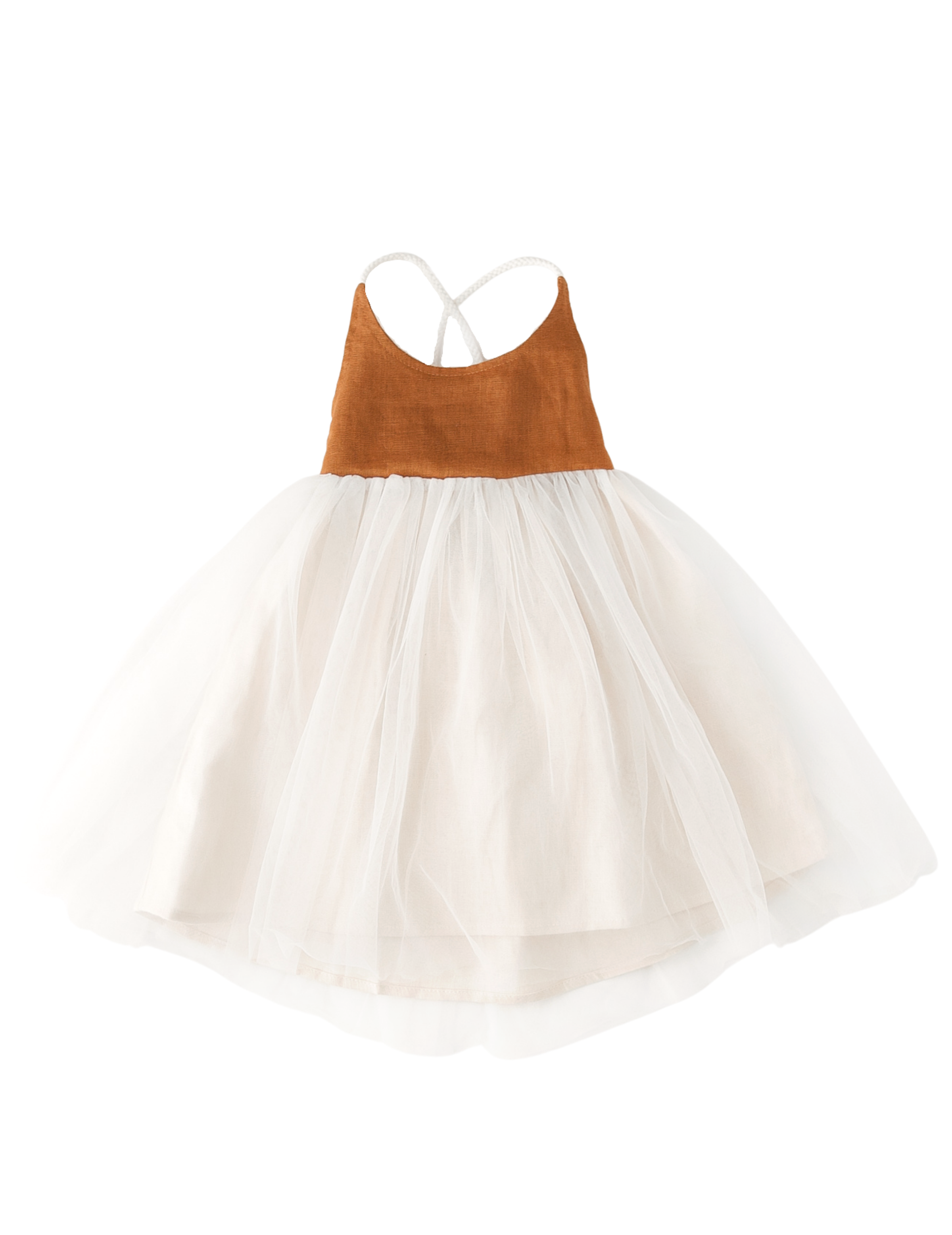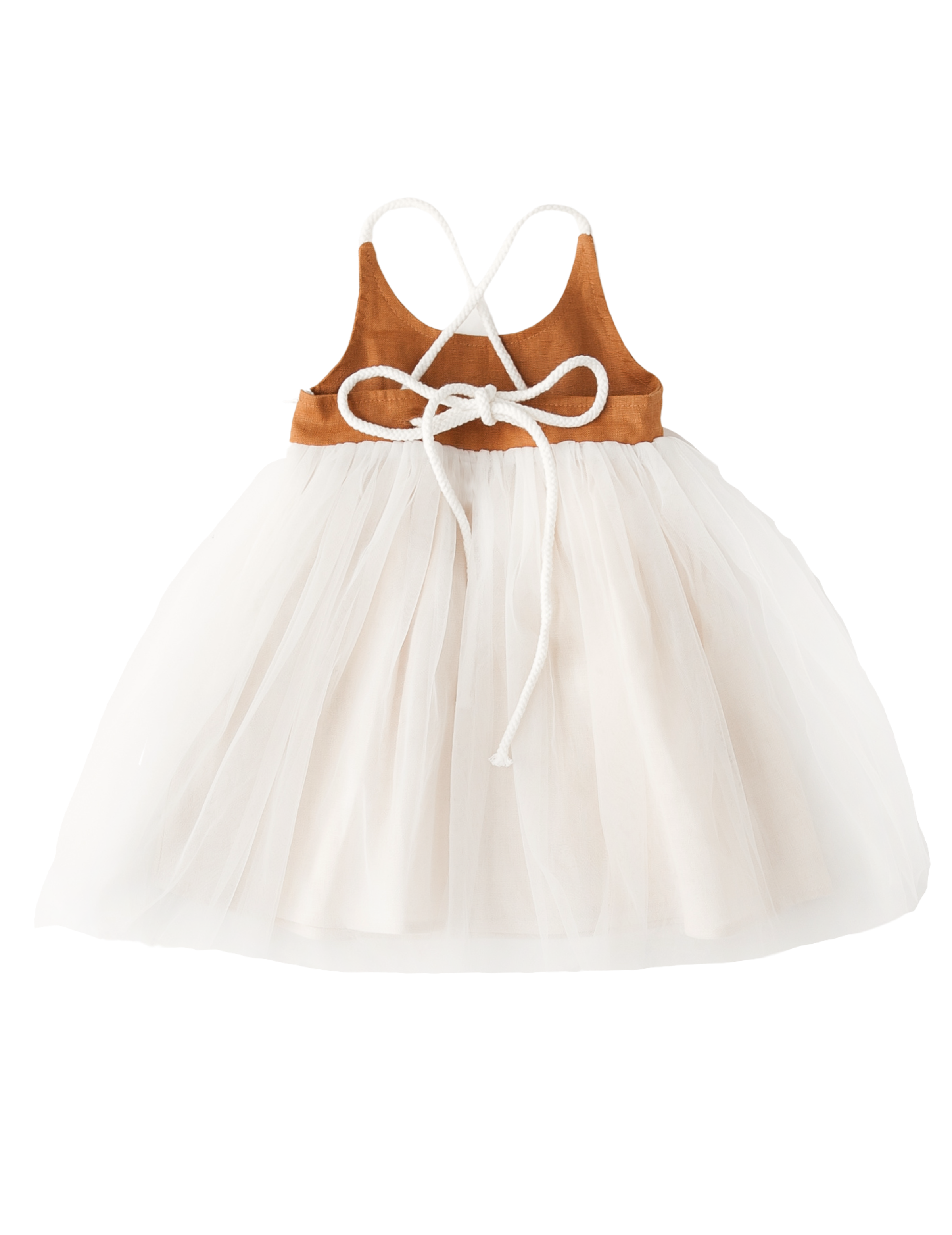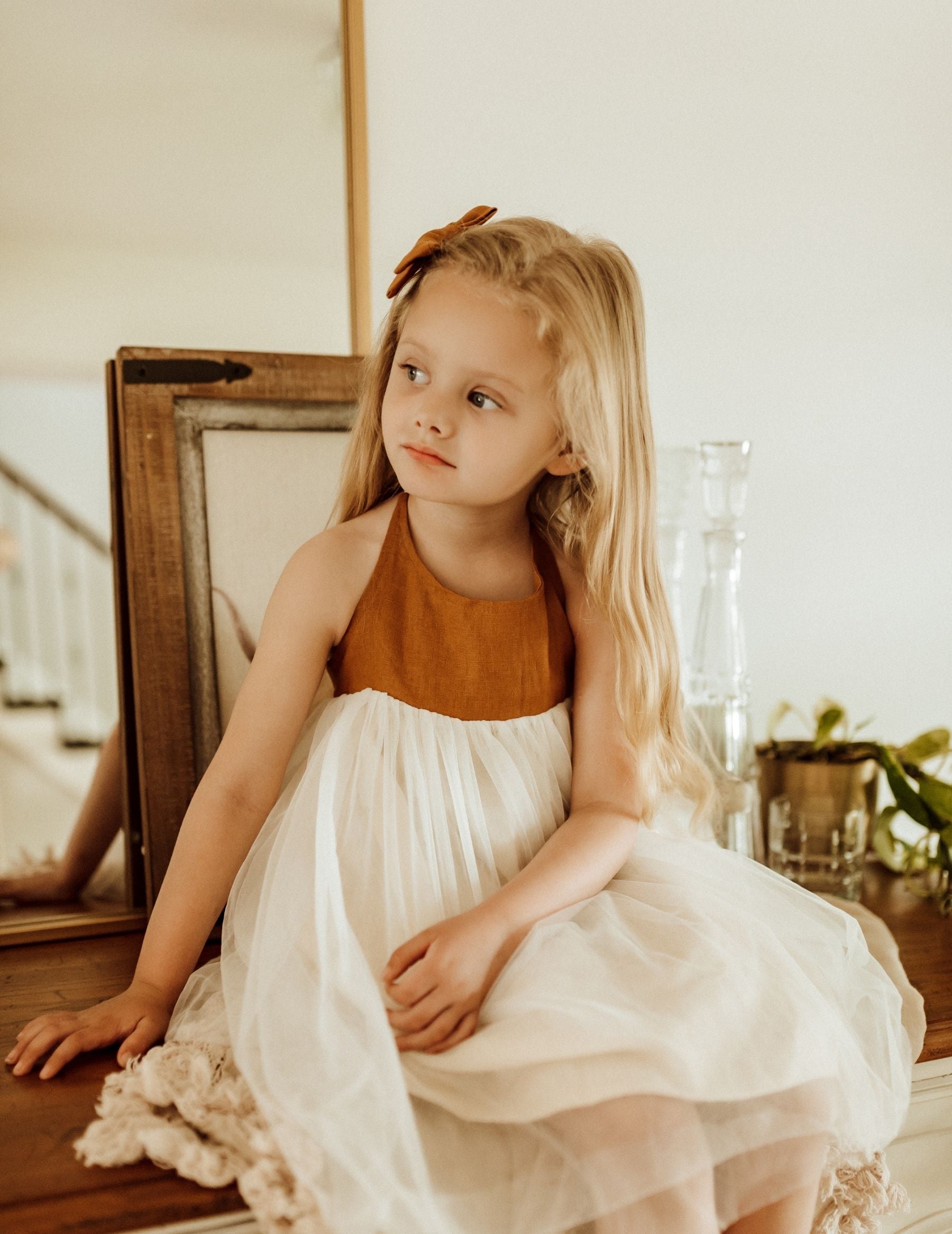 Your girl will feel like a gorgeous little fairy in this tulle and linen dress, featuring a full skirt for ultimate pretty and gorgeous 100% linen.