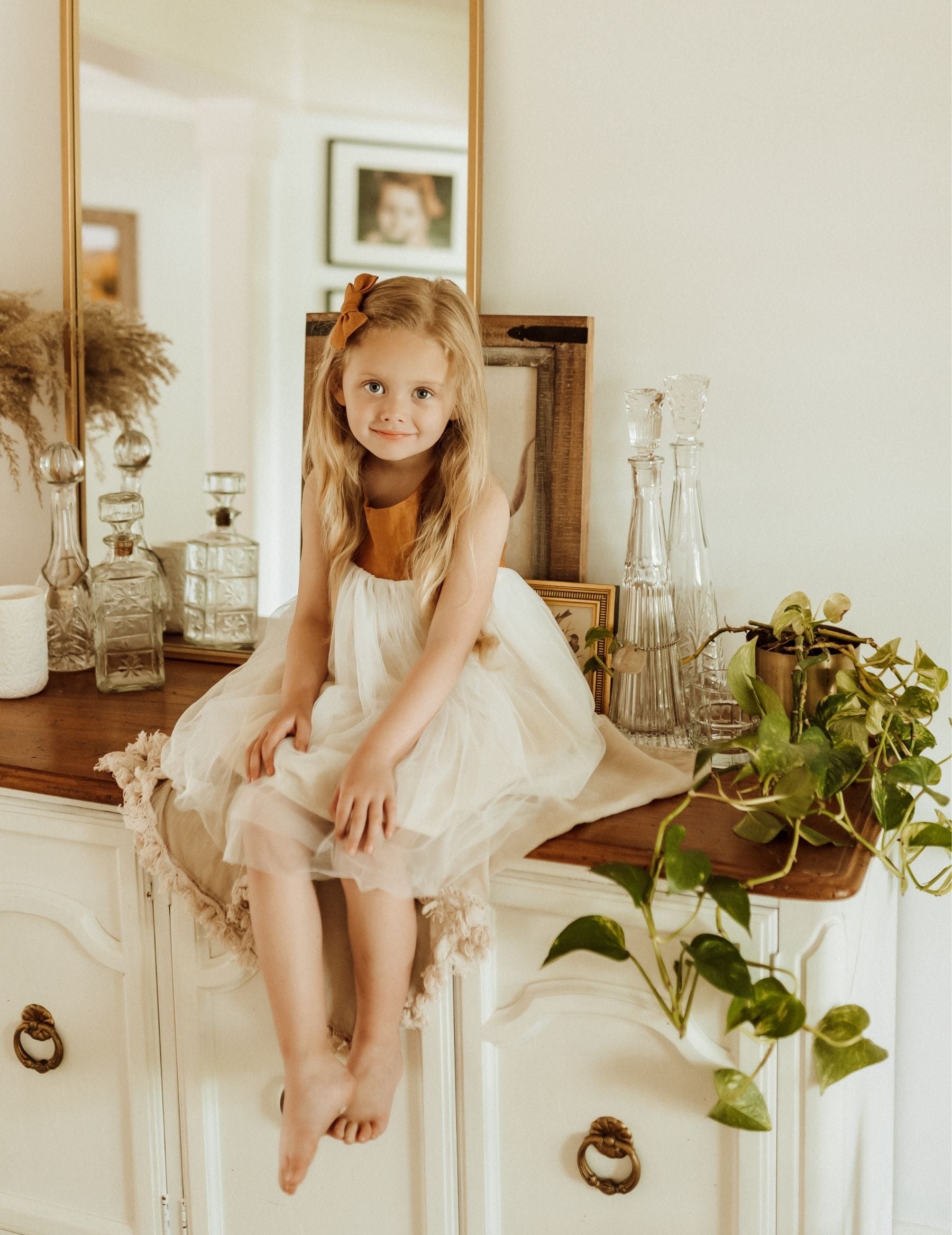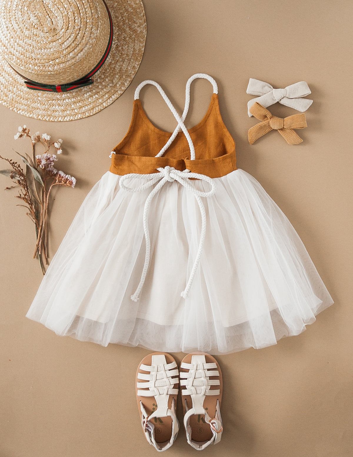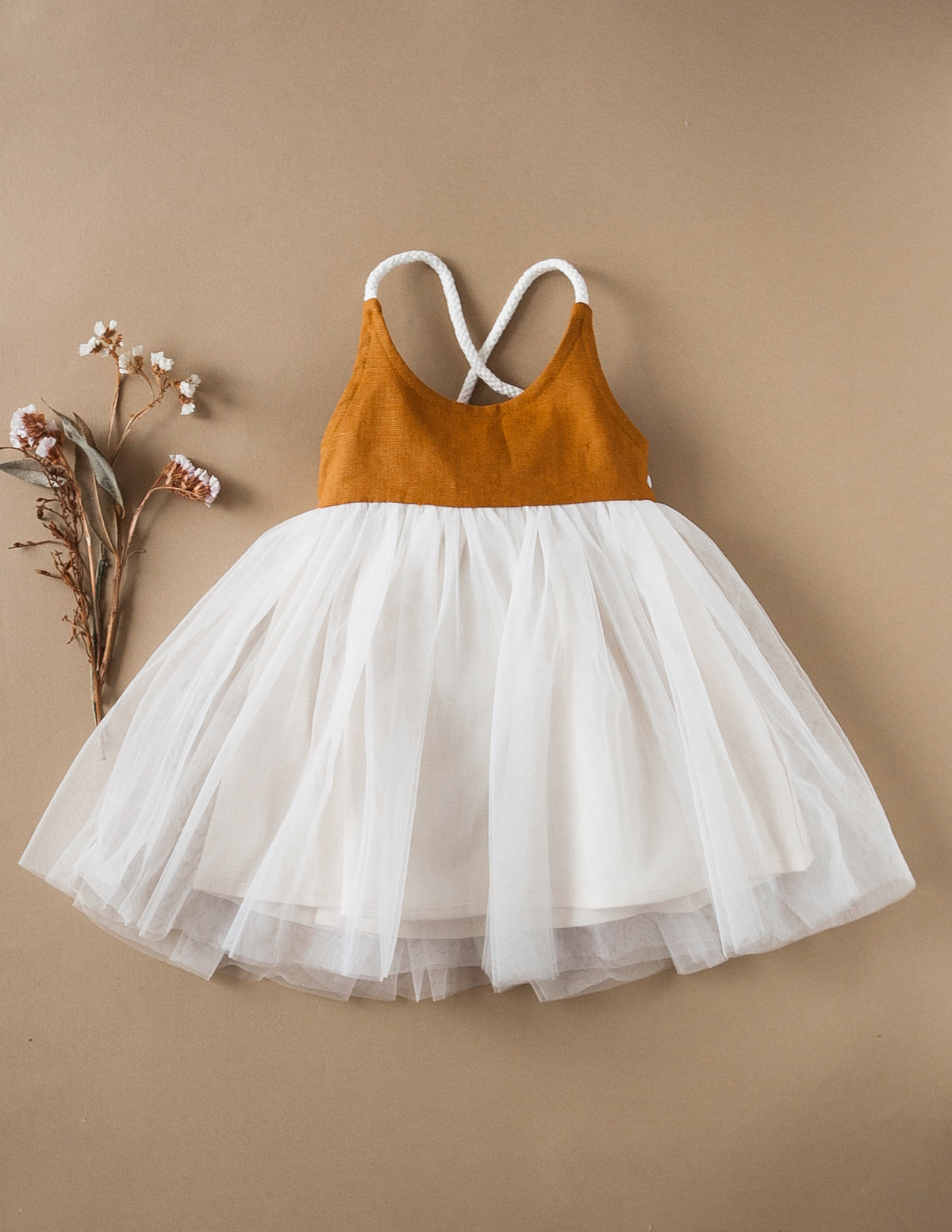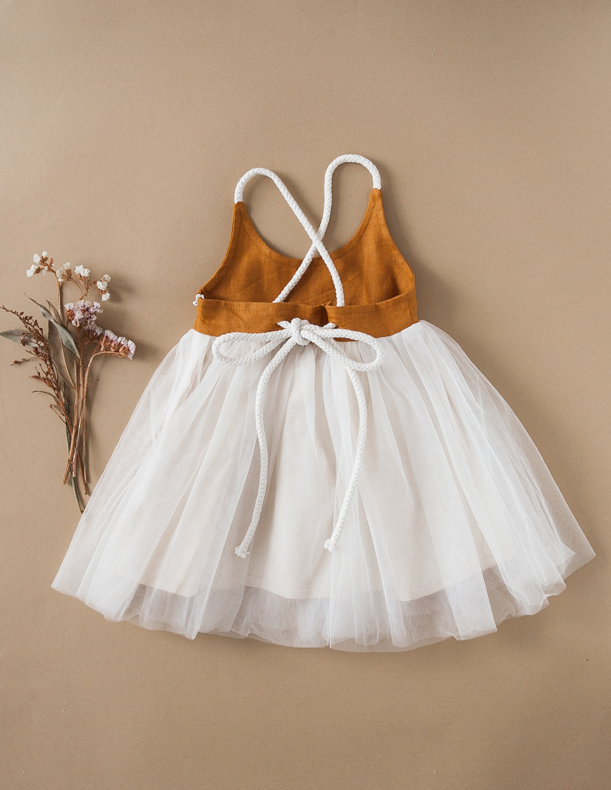 Your girl will feel like a gorgeous little fairy in this tulle and linen dress, featuring a full skirt for ultimate pretty and gorgeous 100% linen.