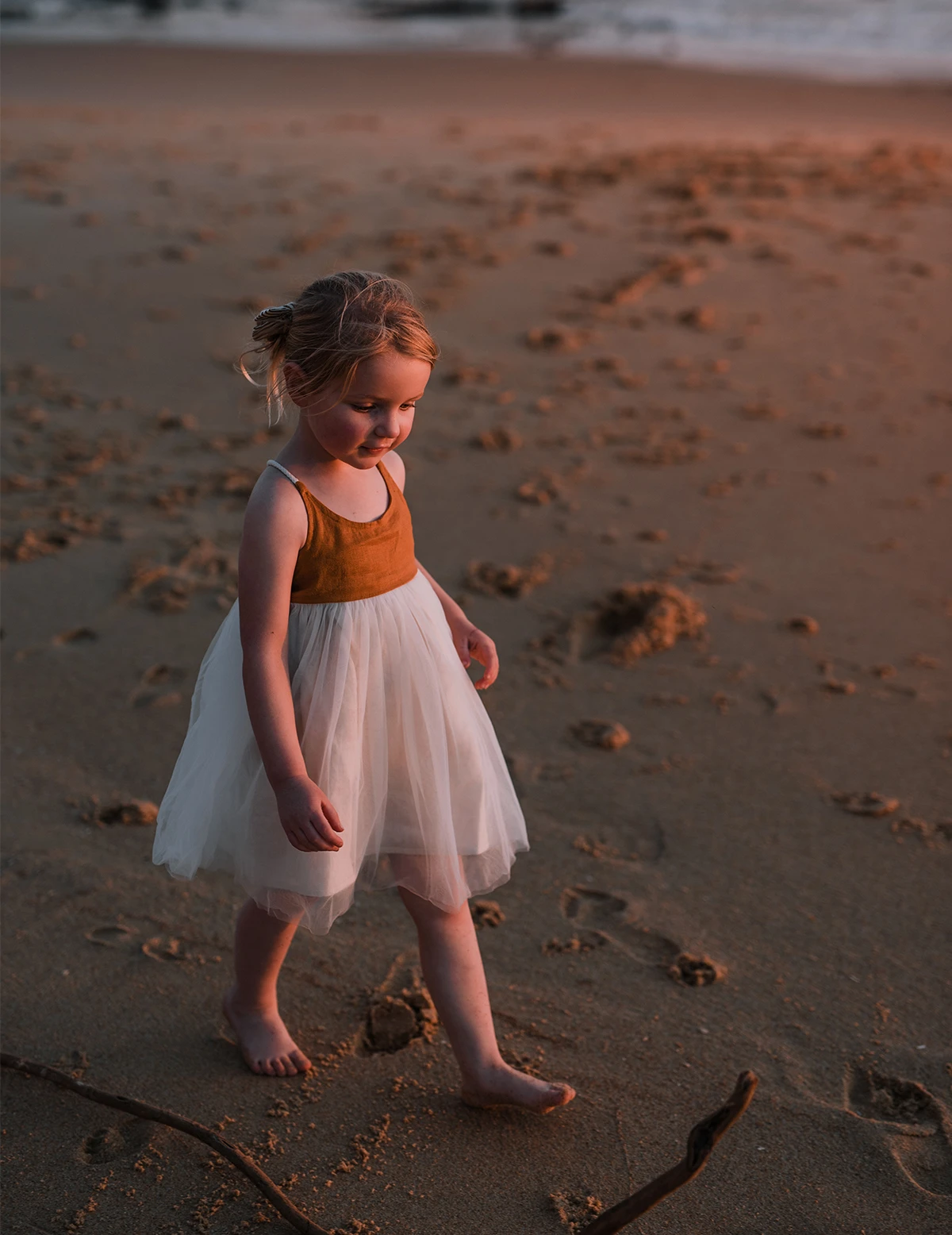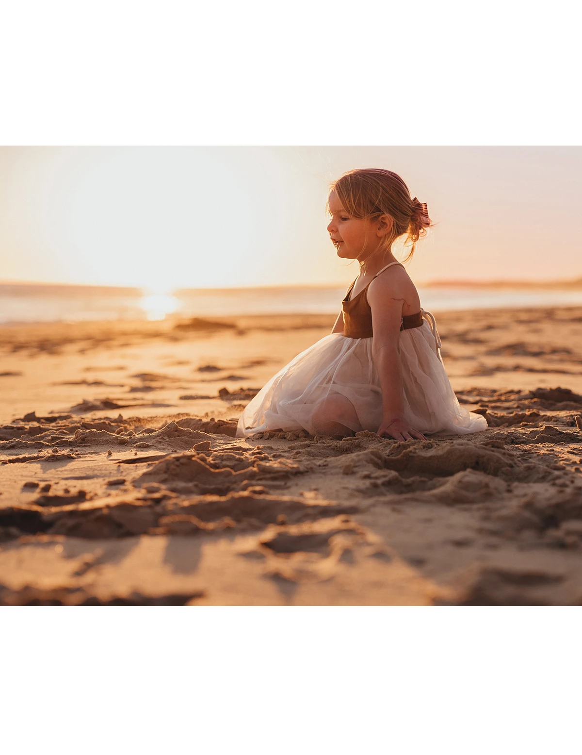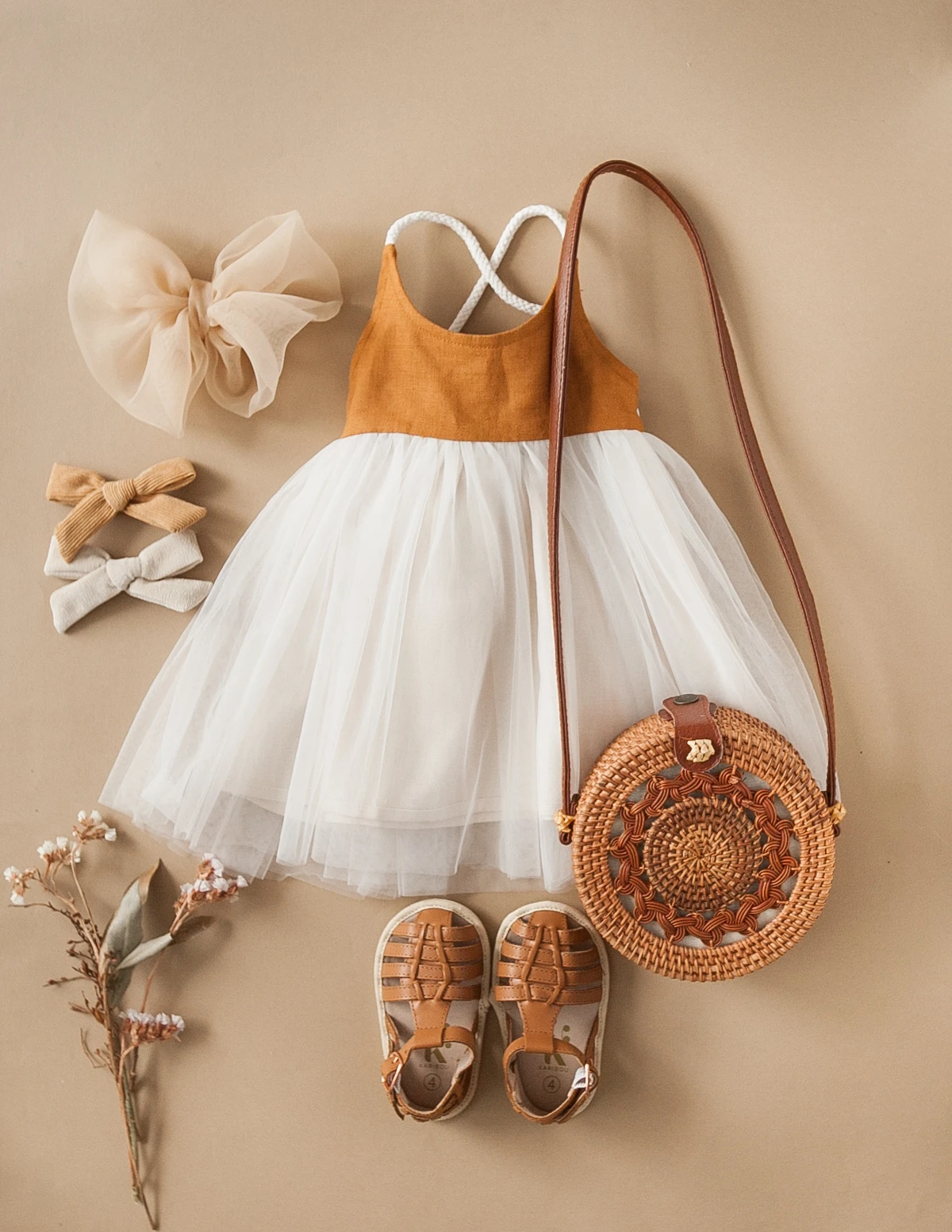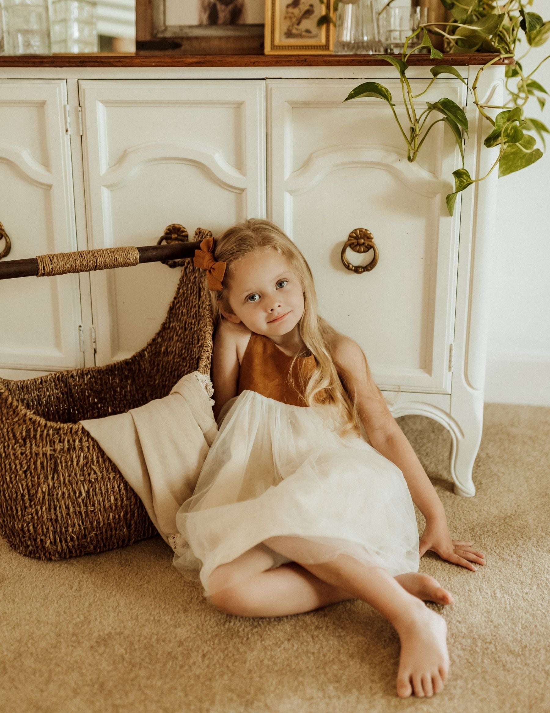 Your girl will feel like a gorgeous little fairy in this tulle and linen dress, featuring a full skirt for ultimate pretty and gorgeous 100% linen.