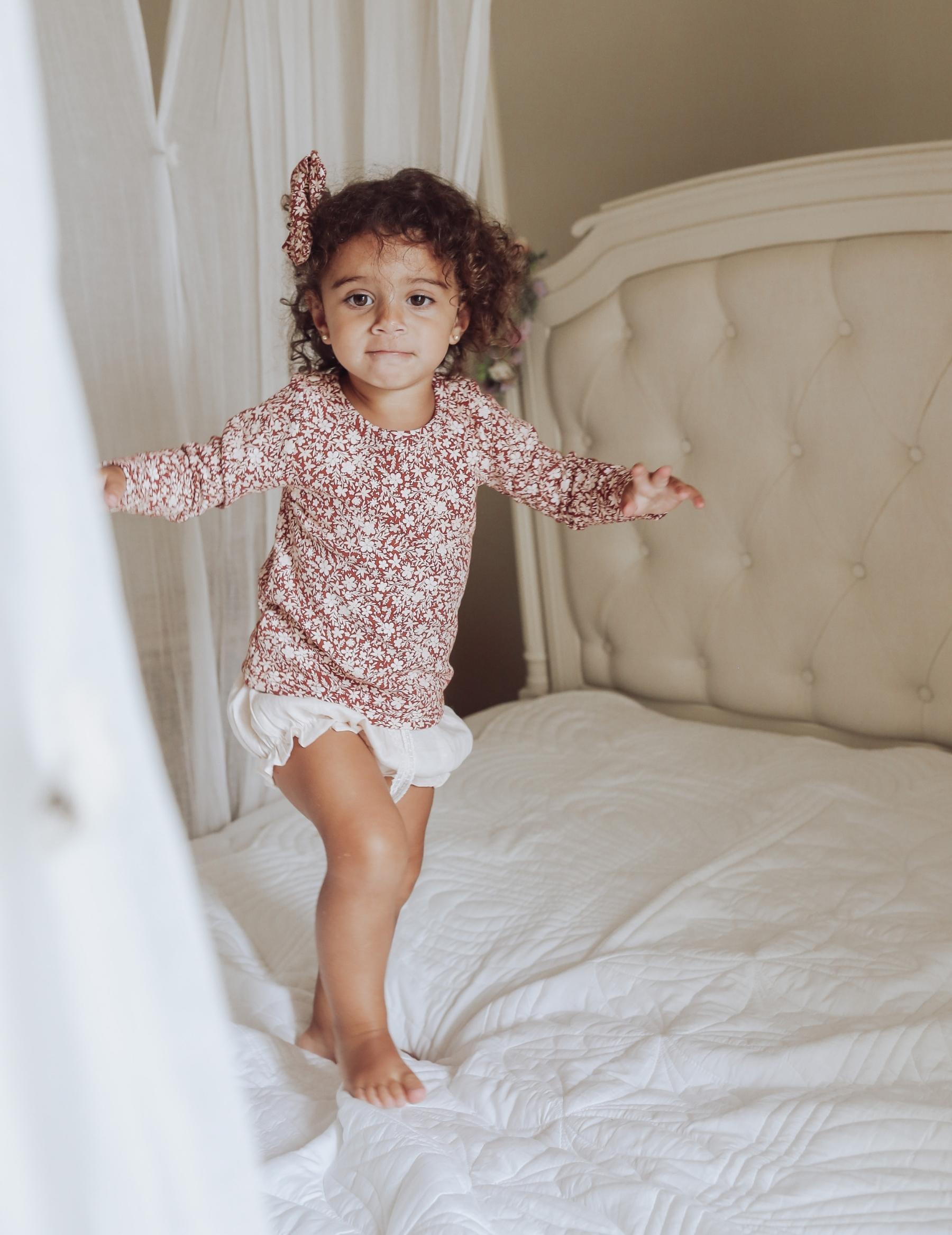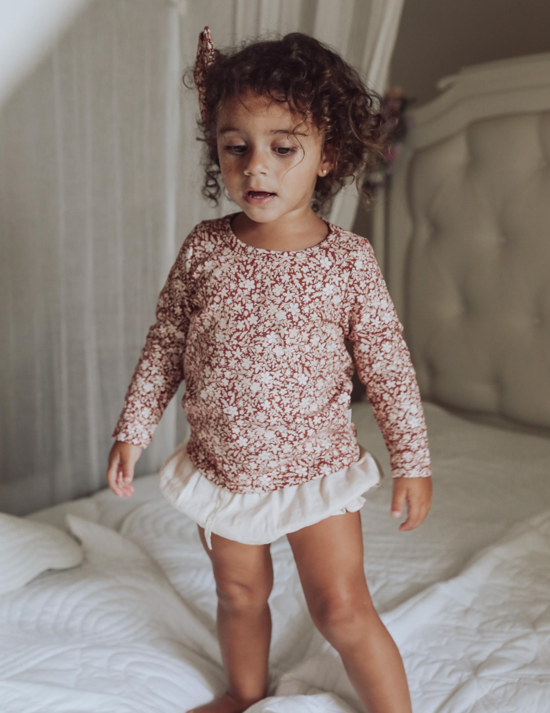 The Emily Top is easy to pair with so many different outfits. Wear it as a base layer, underneath dresses, pair it with shorts, skirts or pants and know that your little girl will look cute and be comfortable no matter what!