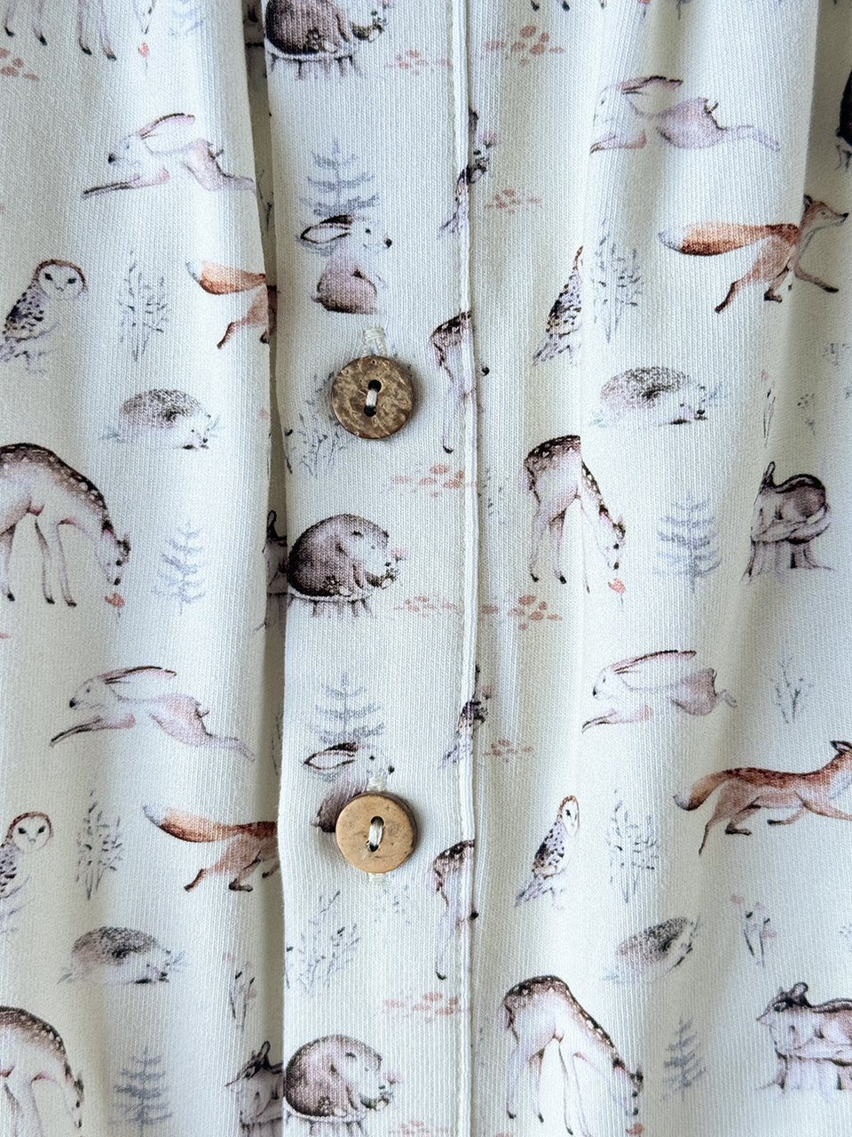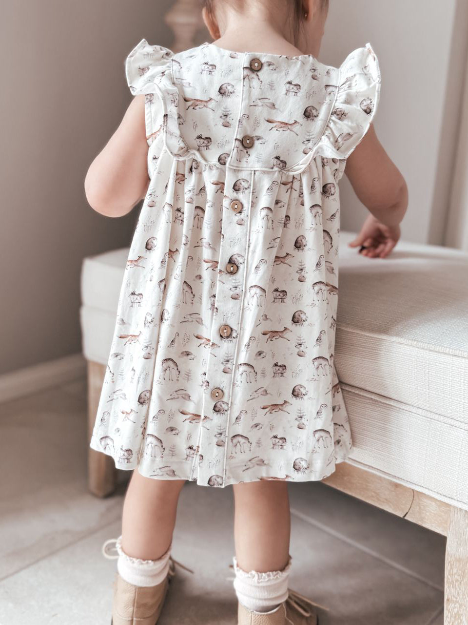 The Woodland Dress, with its delightful animal print, is all about capturing that magic. This super-soft cotton dress offers comfort and cuteness in equal measure.